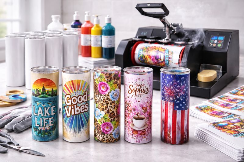 Full-color sublimation printing for vibrant, permanent designs on tumblers, drinkware, and personalized gifts.